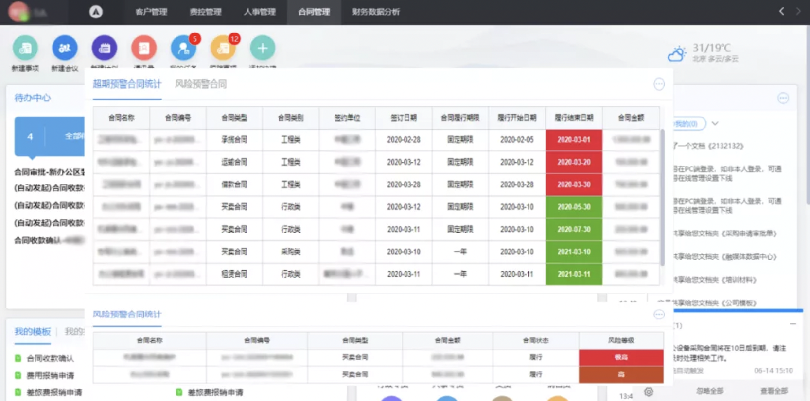 與此同時(shí),為了避免履約風(fēng)險(xiǎn),結(jié)合項(xiàng)目進(jìn)度和合同節(jié)點(diǎn)約定,合同管理平臺(tái)提供自動(dòng)提醒,并觸發(fā)收付款流程,實(shí)現(xiàn)合同預(yù)警。