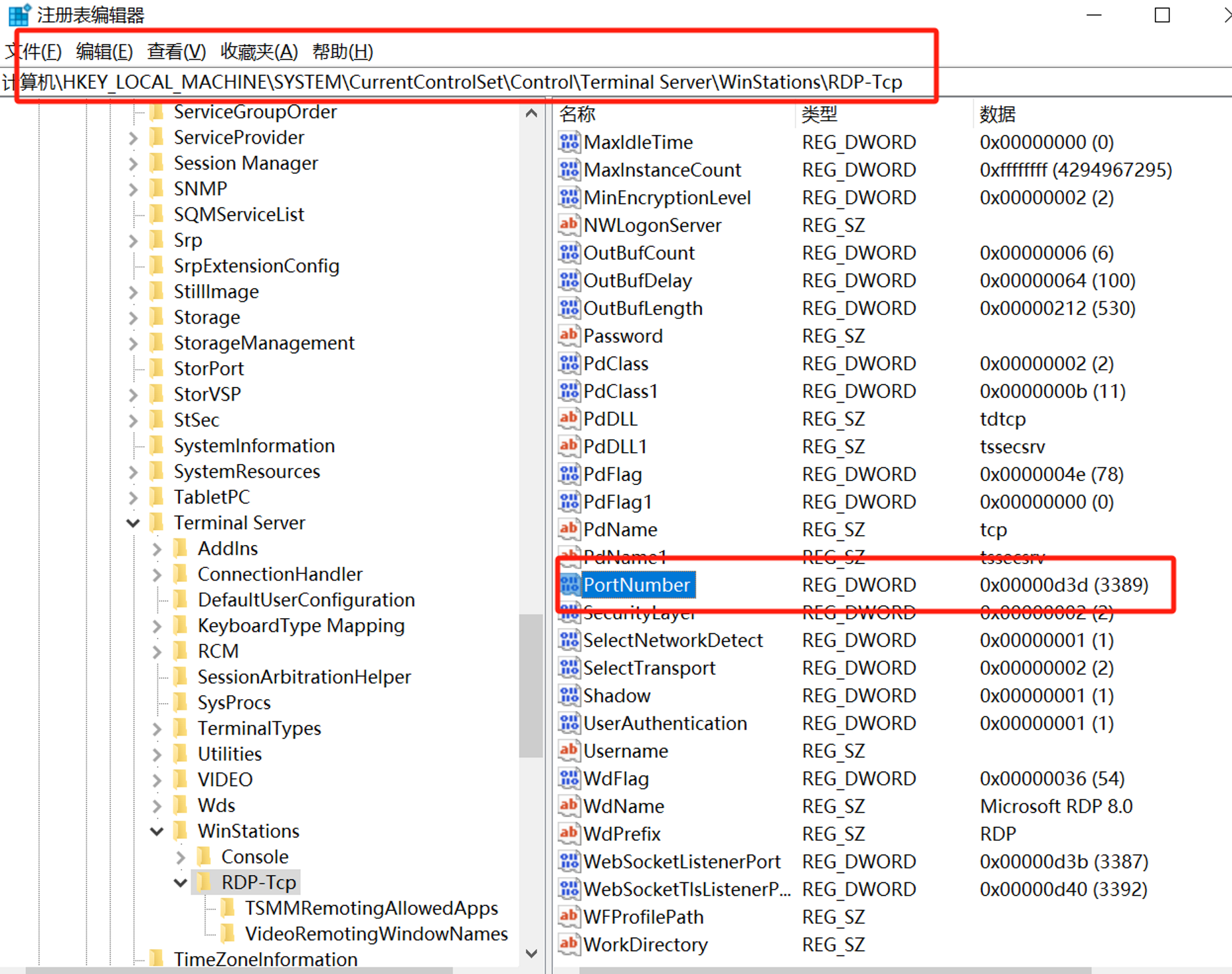 HKEY_LOCAL_MACHINE\SYSTEM\CurrentControlSet\Control\Terminal Server\WinStations\RDP-Tcp