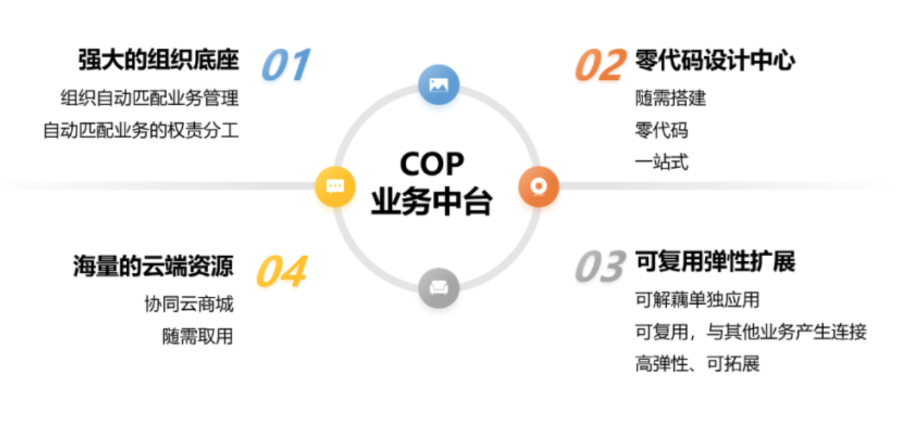 協(xié)同運營平臺COP通過業(yè)務中臺提供給企業(yè)業(yè)務個性化定制的能力。以平臺化的理念,支撐企業(yè)持續(xù)業(yè)務創(chuàng)新,通過零代碼或低代碼的方式實現(xiàn)企業(yè)業(yè)務過程的數(shù)據(jù)化,圍繞企業(yè)數(shù)字化轉型過程中的系統(tǒng)建設需求,進行快速業(yè)務架構建設,通過可視化、輕量級的設計,搭建人與組織、組織與組織間的生產(chǎn)運營、商務溝通、工作協(xié)作、業(yè)務管理等各類業(yè)務應用,讓企業(yè)的業(yè)務創(chuàng)新能快速數(shù)字化轉化,提高業(yè)務管理效率,推進企業(yè)創(chuàng)新突破。